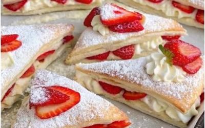 đ§Ÿ Zutaten 1 Rolle BlĂ€tterteig (rechteckig) 400 g frische Erdbeeren 1â2 EL Zucker Optional: etwas Zitronensaft 400 ml Schlagsahne oder…