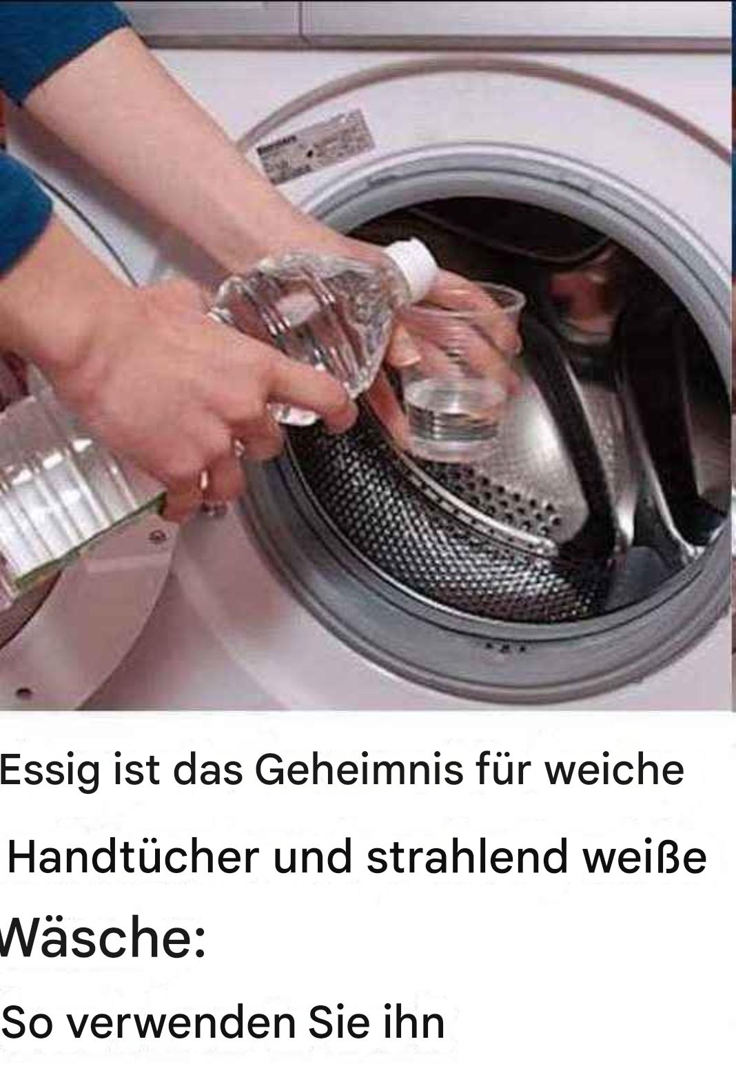 Vergiss Bleichmittel und chemische Aufheller. Gib einfach 1 bis 1,5 Tassen Essig zur Wäsche und deine weißen Textilien sehen wieder frisch und wie neu aus.