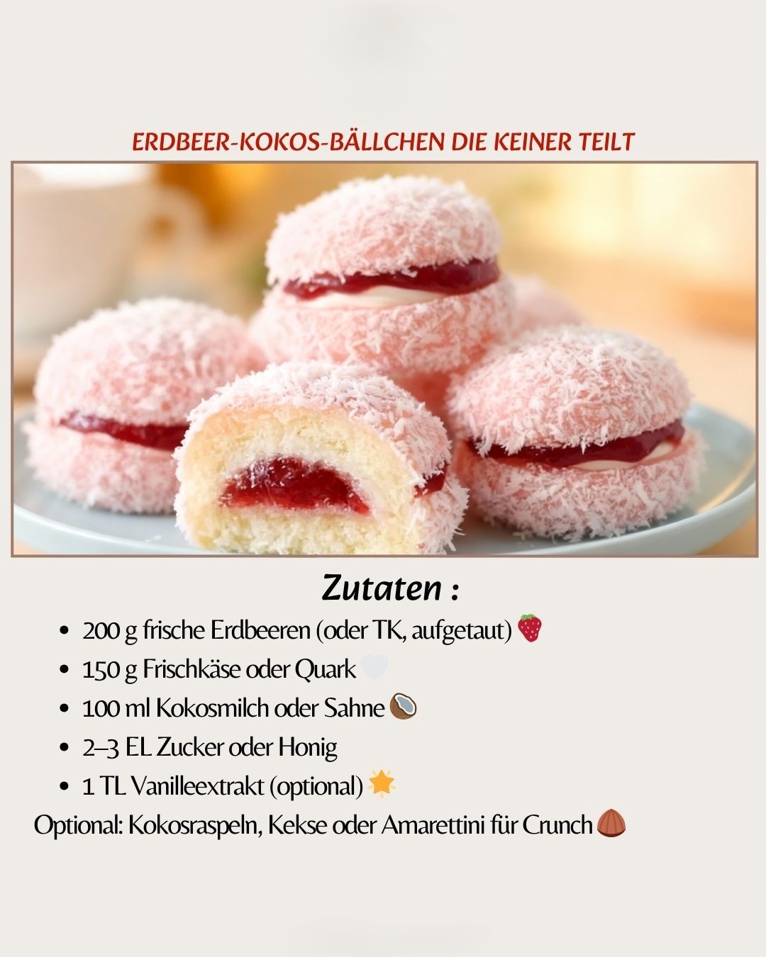 Optional: Kokosraspeln, Kekse oder Amarettini für Crunch 🌰