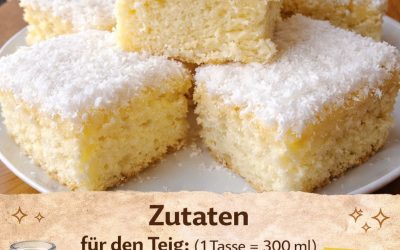 Zutaten 3 Eier 100 g Zucker 6 Päckchen Vanillezucker 100 g Mehl 1 TL Backpulver 25 g Speisestärke 300 ml…