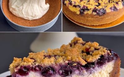 Zutaten: Für die Basis: 300 g trockene Kekse 80 g geschmolzene Butter Für die Blaubeeren: 300 g frische Blaubeeren 1…