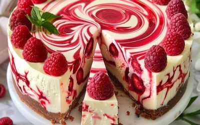 Eleganter Käsekuchen mit weißer Schokolade und Himbeere