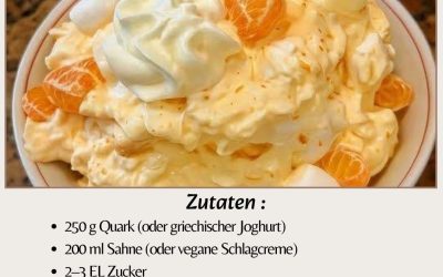 ✨ Zutaten (mit Alternativen) 250 g Quark (oder griechischer Joghurt) 200 ml Sahne (oder vegane Schlagcreme) 2–3 EL…