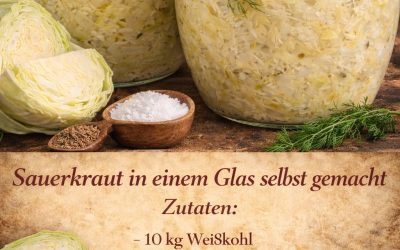 Zutaten 10 kg Weißkohl 120 g Salz 20 g Kümmel 10 g Dill Zubereitung Das Rezept wird auf der…