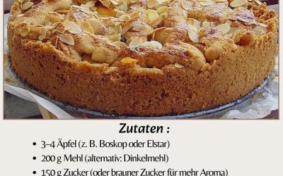 ✨ Zutaten (mit Alternativen) 3–4 Äpfel (z. B. Boskop oder Elstar) 200 g Mehl (alternativ: Dinkelmehl) 150 g…