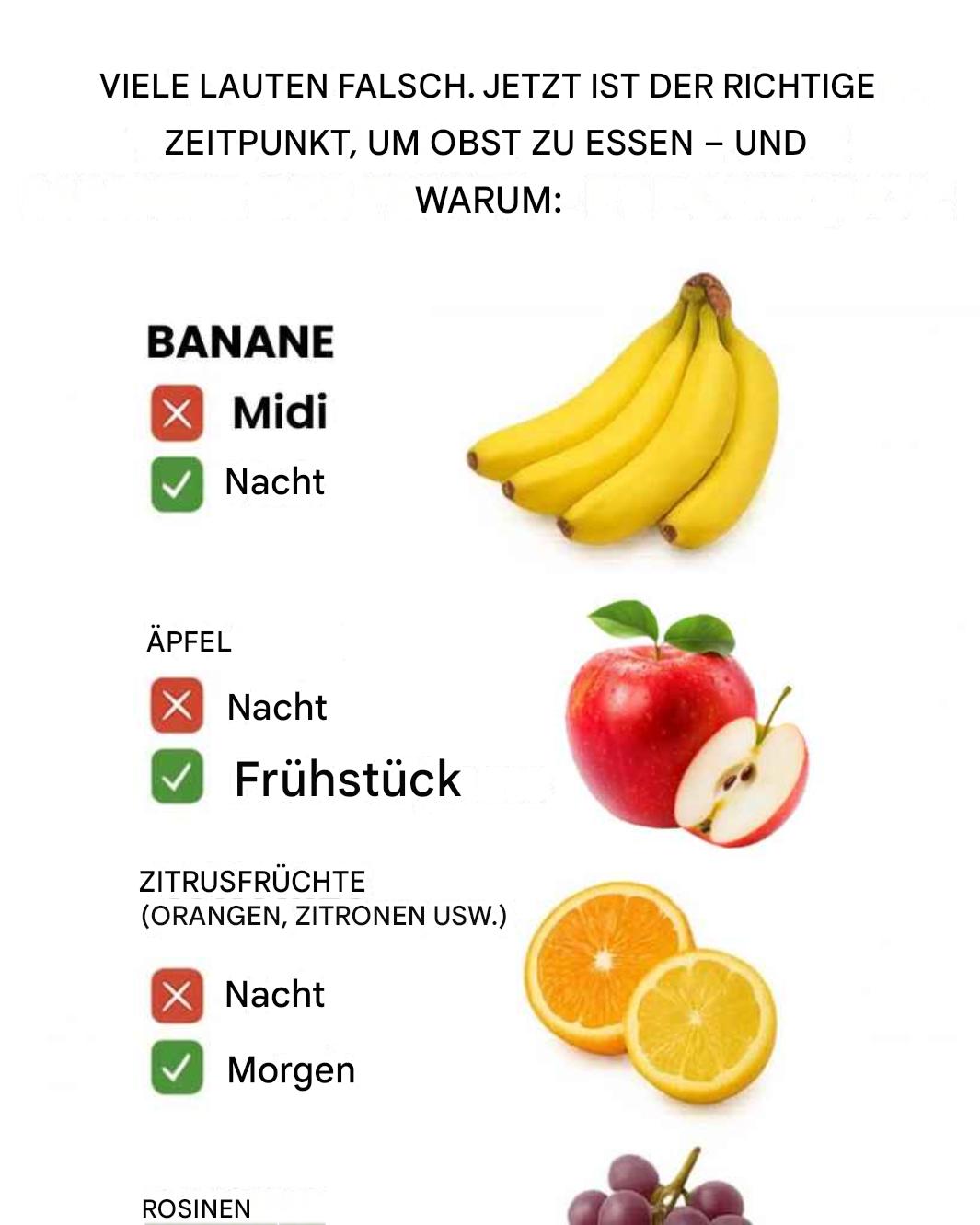 Man hört oft den Rat: „Essen Sie 5 Portionen Obst und Gemüse pro Tag!“ Ja – aber zu welcher Tageszeit eigentlich? Denn auch wenn Obst sehr gesund ist, kann seine Wirkung auf Verdauung, Energie oder Schlaf je nach Zeitpunkt unterschiedlich sein. Ein gut gewählter Zeitpunkt kann den Nutzen sogar deutlich verbessern. Hier sind die idealen Zeiten für 15 gängige Obstsorten – und warum das sinnvoll ist.