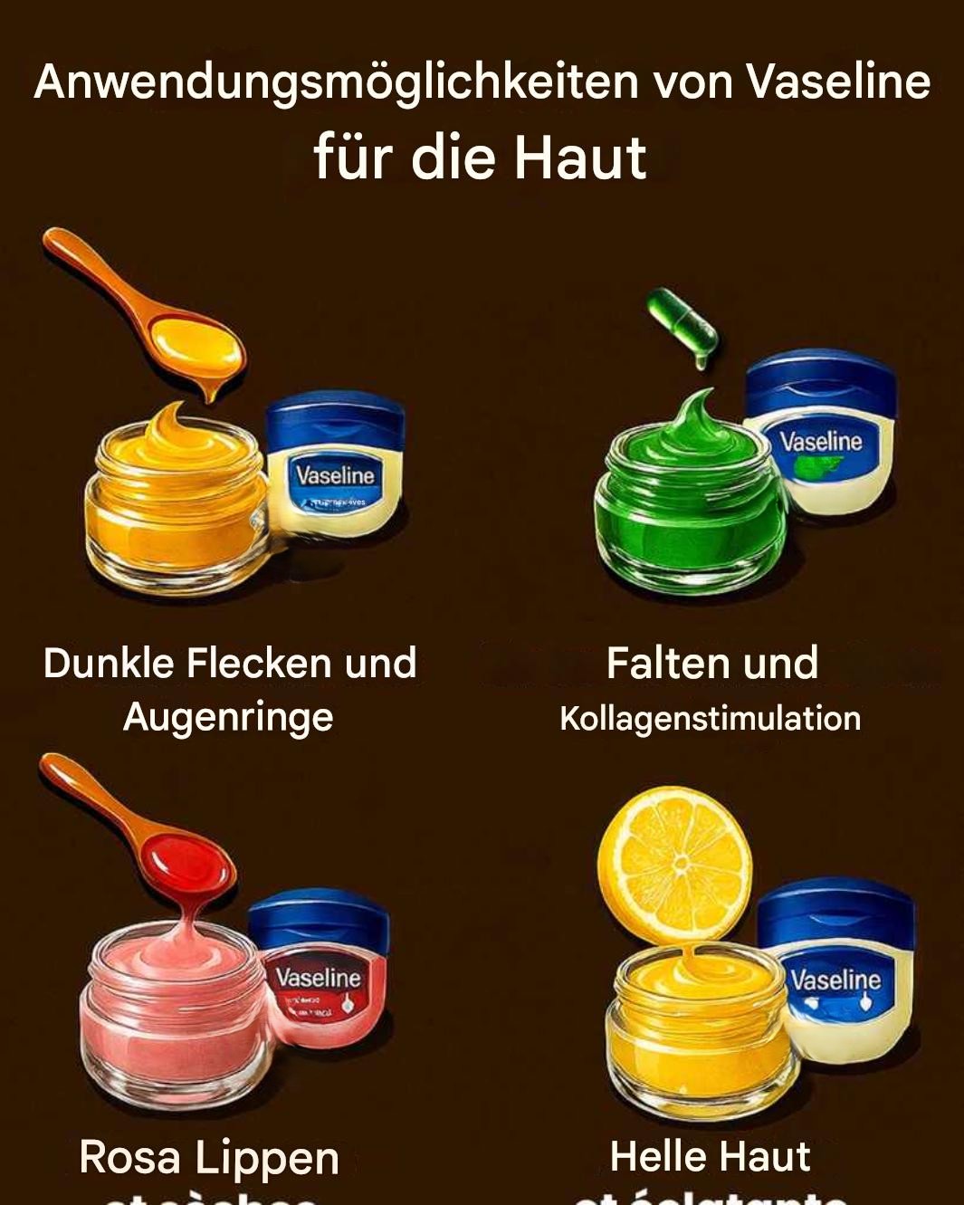 Jeder hat sie schon einmal gesehen – im Badezimmerregal oder in einer alten Kosmetiktasche: die gute alte Vaseline. Auf den ersten Blick wirkt die durchsichtige, unscheinbare Creme wenig beeindruckend… und doch steckt in ihr ein erstaunliches Pflegewunder. Von Feuchtigkeitsschutz bis zur Hautregeneration – Vaseline hat ihren festen Platz in modernen Schönheitsroutinen längst zurückerobert.