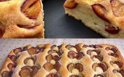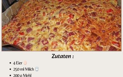 Danach 1 Tasse Mehl mit einem Päckchen Backpulver und zum Schluss den Eischnee vorsichtig unterheben und mit Obst belegen.