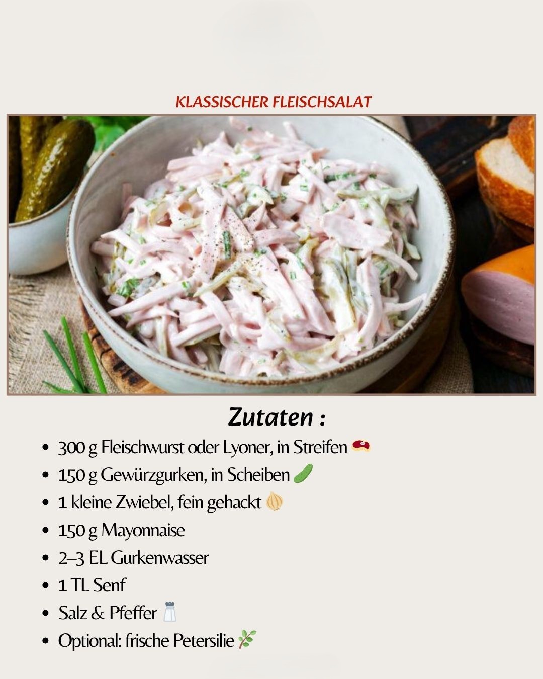 300 g Fleischwurst oder Lyoner, in Streifen 🥩