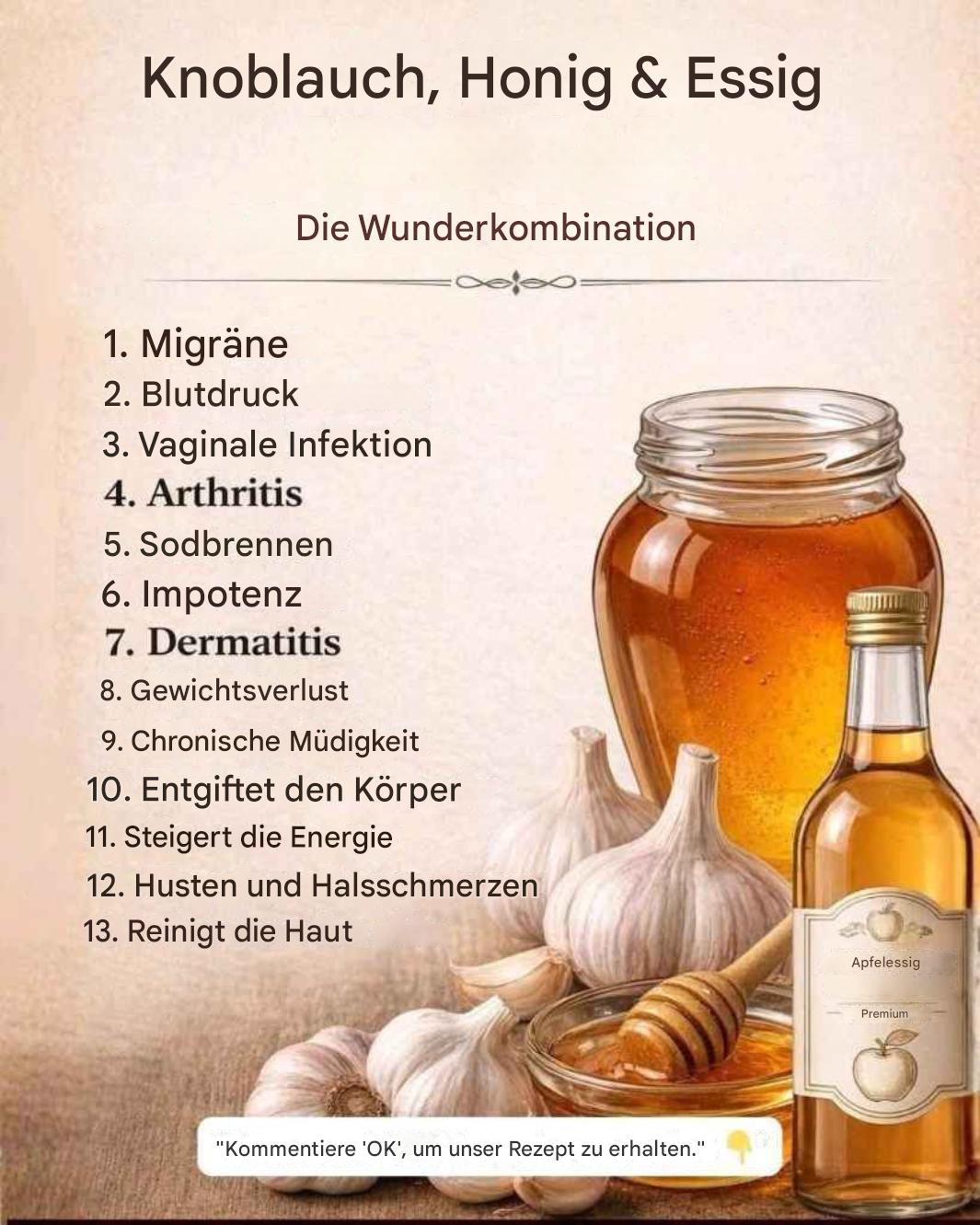 Die Kombination aus Knoblauch, Honig und Nelken ergibt eine kraftvolle Mischung, die in der traditionellen Hausmedizin seit Generationen verwendet wird. Sie ist einfach herzustellen und kann im Rahmen eines gesunden Lebensstils das allgemeine Wohlbefinden unterstĂĽtzen.