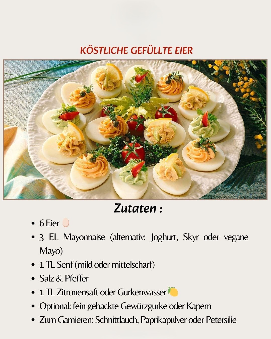Zum Garnieren: Schnittlauch, Paprikapulver oder Petersilie 🌿
