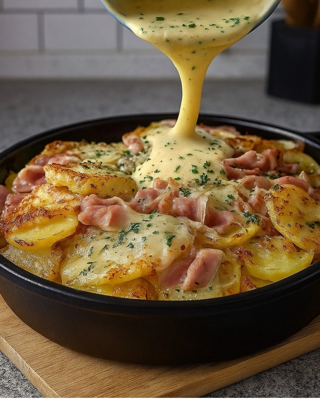 200 bis 250 g gekochter oder geräucherter Schinken, in Stücke oder Streifen geschnitten